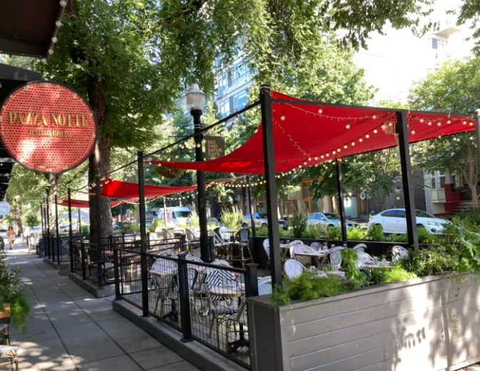 This project involves the construction of a series of exterior patios for outdoor dining along the north side of L Street at the 1801 L Street building in the City of Sacramento. The proposed development consists of three separate al fresco dining seating areas designated for individual tenant spaces, including Pazza Notte, Saigon Alley, and Ginger Elizabeth’s. The project is intended to enhance outdoor dining opportunities while complementing the existing site.