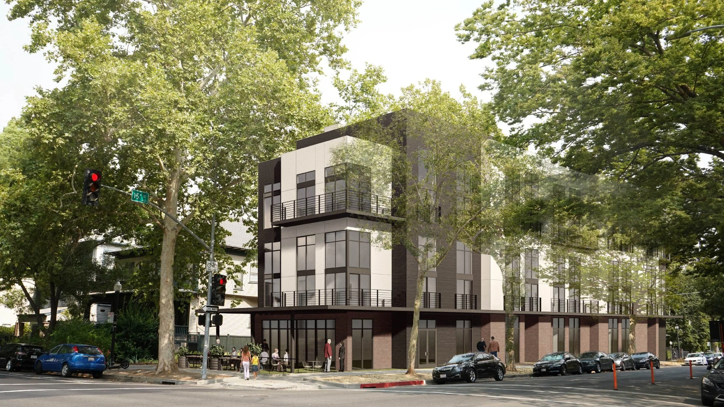 This project involves the development of a new five-story mixed-use building with associated site improvements at the properties located at 620 and 628 15th Street in Sacramento. The project site is approximately 0.22±. The proposed development includes subdivision of the property for condominium purposes into thirty-eight separate residential condominium units, one commercial condominium unit, and common area.